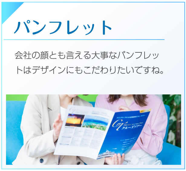 会社の顔ともいえるパンフレットにはこだわりたいですよね。もちろんこだわるだけでなく、スムーズに伝える、イメージを与えることにも重要な役割になります。胸を張って出せるパンフレットを作ってみませんか?