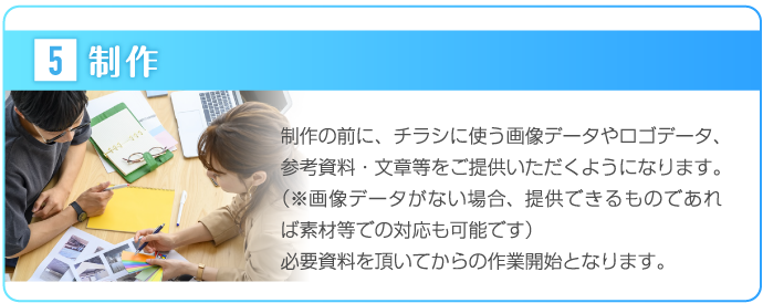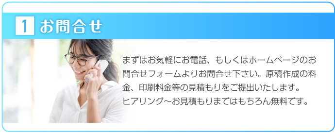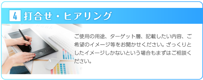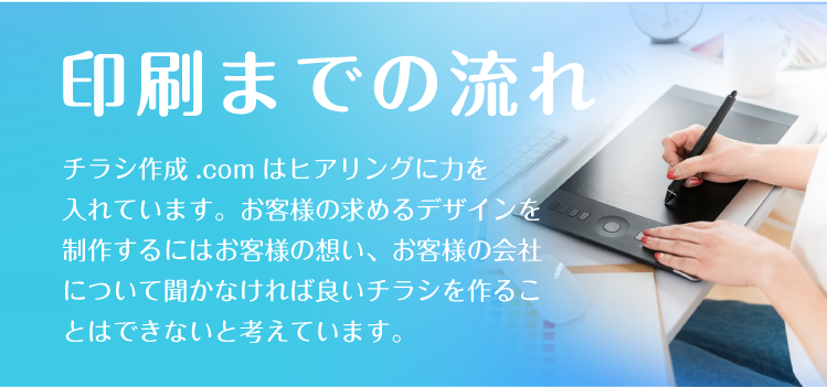 島根チラシ作成.comでは、お客様の思いを形にするため、ヒアリングに力をいれております。何を伝えていいかわからないという方も多いかと思いますが、好きな色、思い、こんなことをしたいなど、ざっくりとしたイメージで構いませんので、担当スタッフにお伝えください。それを形にするのがプロの私たちの仕事ですので、安心してお任せしていただければと思います。
